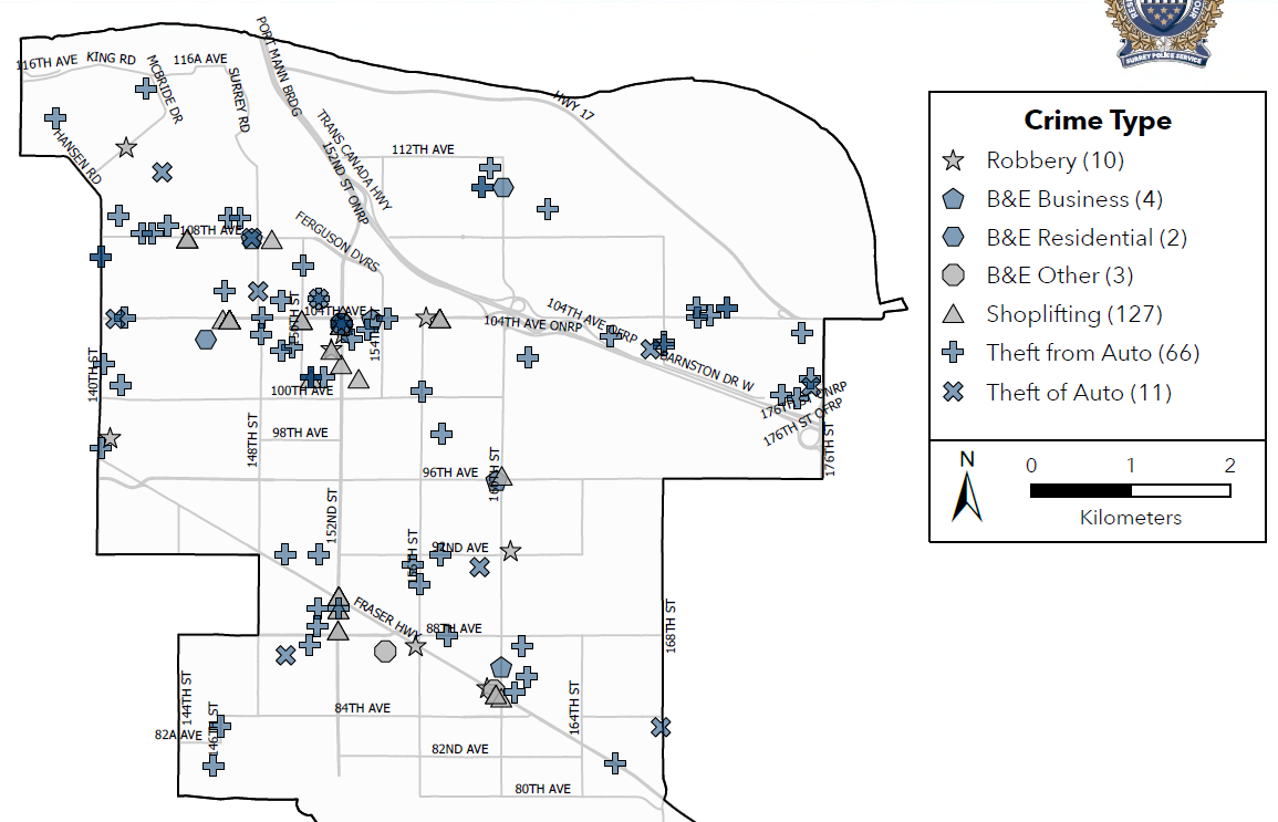=> May be difficult to justify given the relatively low incidence of crime versus the other areas of Surrey – see maps with below.